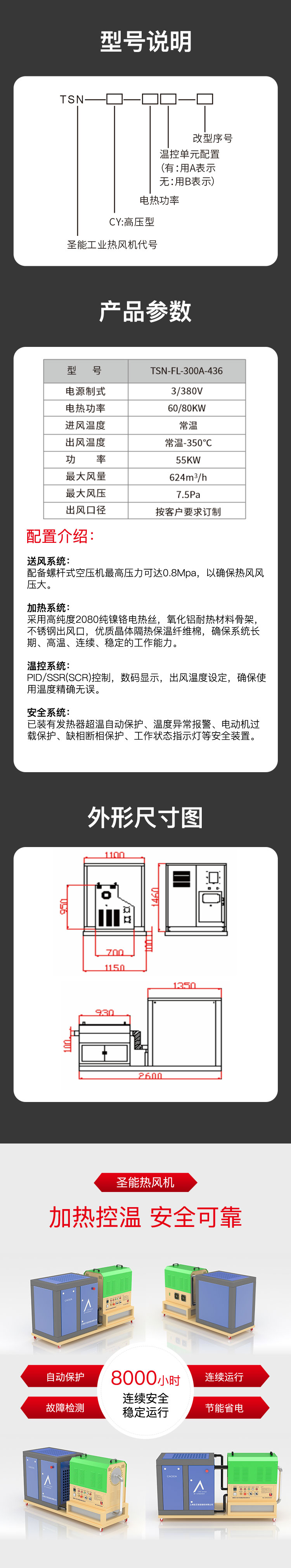 本產(chǎn)品風(fēng)量大、風(fēng)壓高、控制精確,適用于各行業(yè)的加熱、老化、固化、熔接、干燥、升溫及土建筑工上的水泥養(yǎng)護等工序使用,是熱風(fēng)輸送爐、干燥爐、烘箱、烘房、烘道、印刷PS干燥、鑄造行業(yè)砂鍋干燥、熱風(fēng)收縮機械、封裝機械、容器內(nèi)部干燥/升溫、管道送風(fēng)、印刷制品油墨瞬間干燥、橡膠制品加熱升溫、材料保溫等行業(yè)最佳產(chǎn)品,有效的提高產(chǎn)品質(zhì)量及效率,是現(xiàn)代工業(yè)熱源升級換代的首選加熱產(chǎn)品。